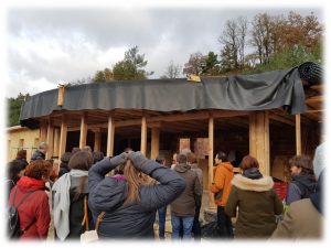 Se trata de un proyecto novedoso iniciado por los jóvenes Urtzi Arrieta Puñal y Ander Magallón Lusarreta. El arquitecto que ha desarrollado el proyecto es Iñaki Urkia. Es una inspiradora historia de dos jóvenes que decidieron abandonar su zona de confort para iniciar su sueño, que se ha convertido en una maravilla social y cultural para los demás. Una de las claves de este proyecto es el aprovechamiento de los recursos naturales del entorno y el uso de técnicas tradicionales. Parte de las obras han sido ejecutadas con voluntariado, con la ayuda de especialistas en diferentes técnicas, contribuyendo así a la transmisión de saberes. Durante la visita observamos que han desarrollado un proyecto dándole importancia a la integración del edificio en el entorno aprovechando el desnivel del terreno para no superar una altura que pueda tener un gran impacto visual. De cualquier manera, los colores del edificio favorecen esta integración con el medio natural gracias al uso de tierras y madera de la zona. Algunas de las fotografías de la visita: